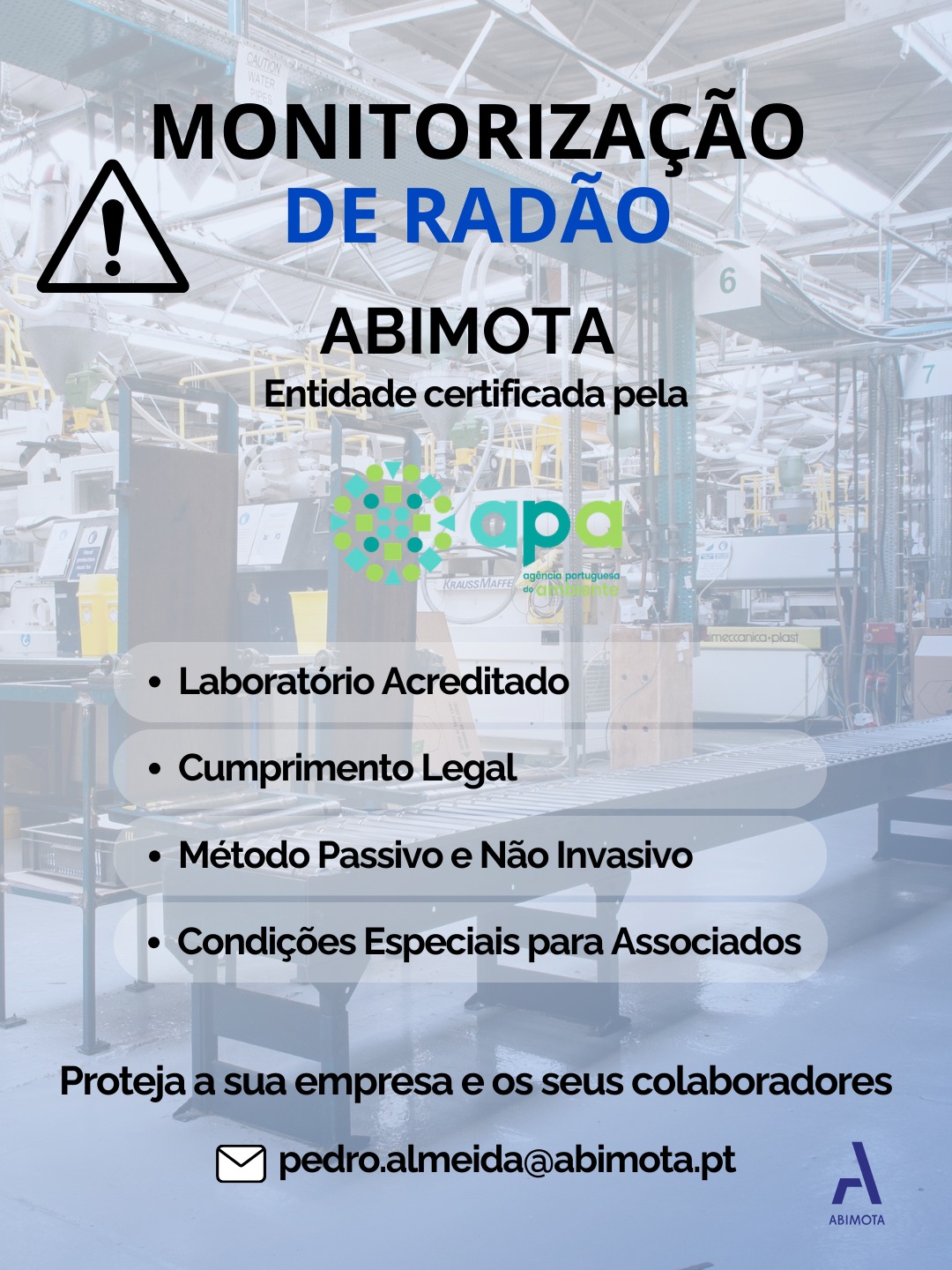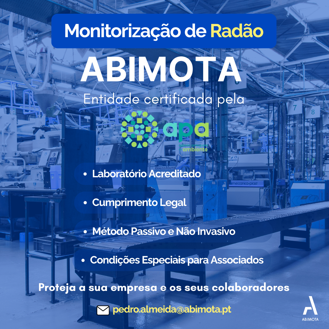 Inscrição A DECORRER 50 ANOS ABIMOTA AM2R PROJETOS FINANCIADOS FORMAÇÃO EXCELÊNCIA NA RELAÇÃO COM O CLIENTE FORMAÇÃO OTIMIZAÇÃO DE PROCESSOS PRODUTIVOS NA INDÚSTRIA 4.0 WEBINAR WEBINAR MOBILIDADE SUSTENTÁVEL: NEGÓCIOS DE FUTURO PROPÓSITO E INOVAÇÃO A ABIMOTA presta um vasto leque de serviços técnicos, tendo como objetivo apoiar as empresas em várias áreas. PONTO ÚNICO NA PENÍNSULA IBÉRICA REFERÊNCIA NA QUALIDADENO AMBIENTE E NA SEGURANÇA NA INVESTIGAÇÃO NA QUALIFICAÇÃO E NA PROMOÇÃO SERVIÇOS APOIO JURÍDICO AMBIENTE CONSULTADORIA TÉCNICA RECURSOS HUMANOS NORMALIZAÇÃO ENERGIA FORMAÇÃO QUALIDADE CANDIDATURAS A FUNDOS INTERNACIONALIZAÇÃO LABORATÓRIO TERMOGRAFIA MOBILIÁRIO MOBILIDADE SUAVE FERRAGENS COMPROMISSO DE RODA NO AR A marca, com a designação Portugal Bike Value, tem como objetivo promover o setor da Mobilidade Suave português. FORMAÇÃO FINANCIADAConheça a oferta formativa da ABIMOTA, entidade acreditada pela DGERT para organização,promoção, desenvolvimento e execução de ações de formação.PROJETOS EM CURSO PROJETOSConheça os projetos da ABIMOTA nas áreas damobilidade suave, ferragens e do setor mobiliário.PROJETOS EM CURSO ASSOCIE-SEA ABIMOTA presta um vasto leque de serviços técnicos tendo como objetivo apoiar as empresas em várias áreas. VANTAGENSINSCRIÇÃO